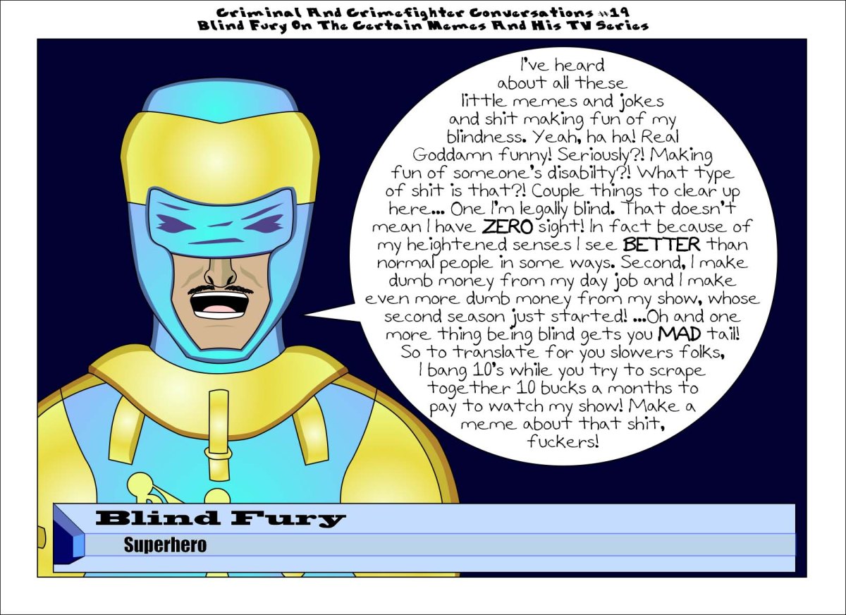 ccc-19-blindfury Published March 21, 2016 at 1650 × 1200 in Criminal And Crimefighter Conversations #19 Blind Fury On Certain Memes And His TV Series Share this:Tweet Click to print (Opens in new window) Print Click to share on Reddit (Opens in new window) Reddit Share on TumblrLike Loading...