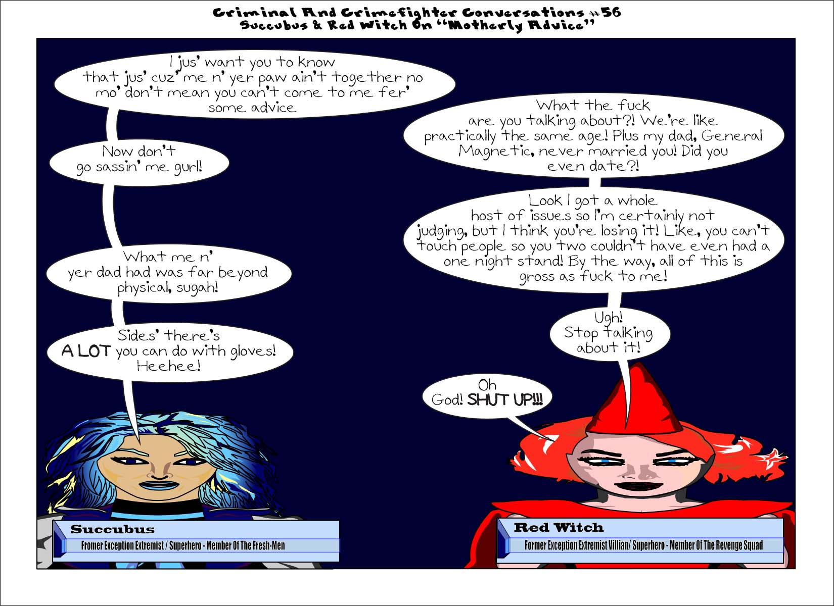 ccc-56-succubsredwitch Published June 7, 2016 at 1650 × 1200 in Criminal And Crimefighter Conversations #56 Succubus & Red Witch On “Motherly Advice” Share this:Tweet Click to print (Opens in new window) Print Click to share on Reddit (Opens in new window) Reddit Share on TumblrLike Loading...