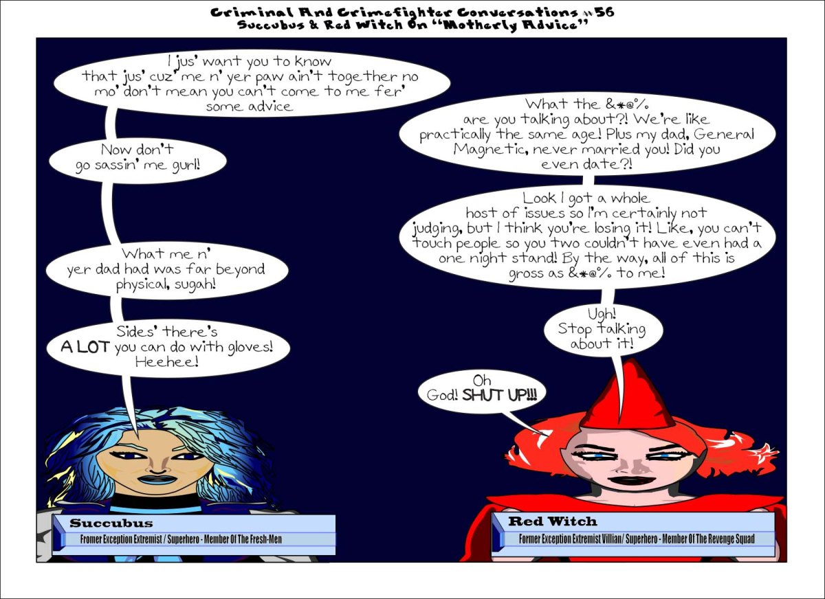 ccc-56-succubsredwitchc Published June 7, 2016 at 1650 × 1200 in Criminal And Crimefighter Conversations #56 Succubus & Red Witch On “Motherly Advice” (Censored) Share this:Tweet Click to print (Opens in new window) Print Click to share on Reddit (Opens in new window) Reddit Share on TumblrLike Loading...