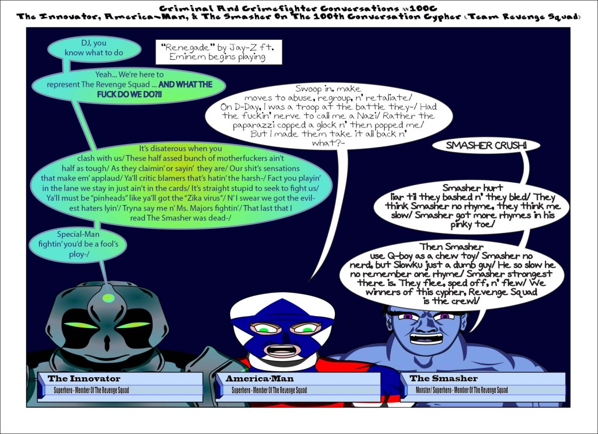 ccc-100C-theinnovatoramericamansmasher Published September 14, 2016 at 1650 × 1200 in Criminal And Crimefighter Conversations #100A-D The 100th Conversation Cyphers « Previous Next » Share this:Tweet Click to print (Opens in new window) Print Click to share on Reddit (Opens in new window) Reddit Share on TumblrLike Loading...