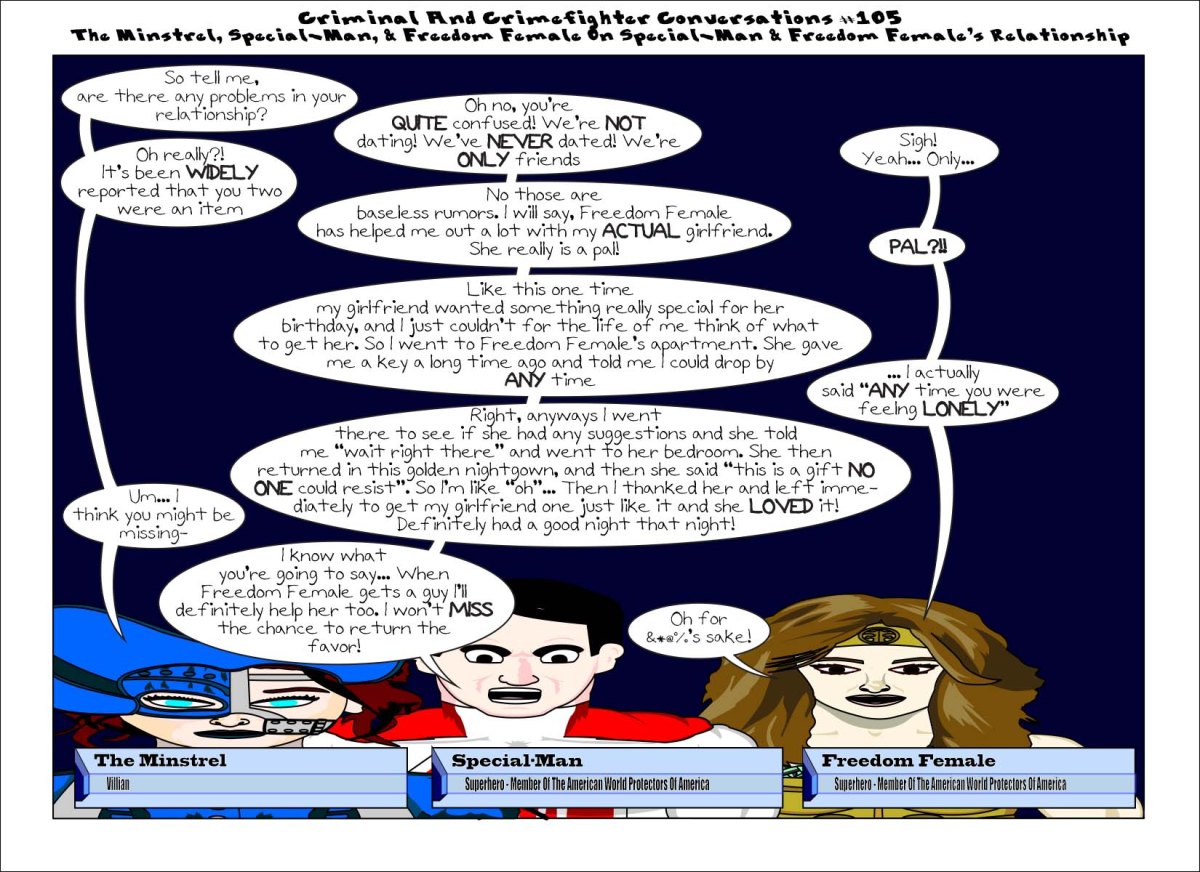 ccc-105-theminstrelspecialmanandfreedomfemale Published September 28, 2016 at 1650 × 1200 in Criminal And Crimefighter Conversations #105 The Minstrel, Special-Man, & Freedom Female On Special-Man & Freedom Female’s Relationship (Censored) Share this:Tweet Click to print (Opens in new window) Print Click to share on Reddit (Opens in new window) Reddit Share on TumblrLike Loading...