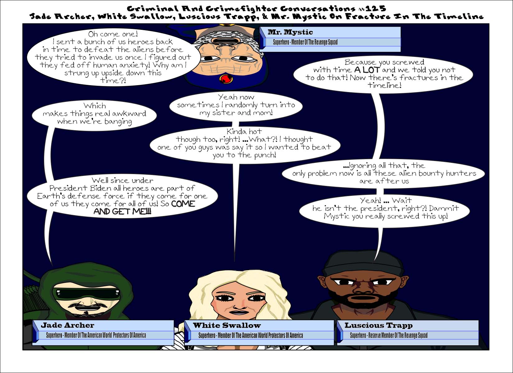 ccc-125-jadearcherwhiteswallowandluscioustrappmrmstic Published November 9, 2016 at 1650 × 1200 in Criminal And Crimefighter Conversations #125 Jade Archer, White Swallow, Luscious Trapp, & Mr. Mystic On Fracture In The Timeline Share this:Tweet Print (Opens in new window) Print Share on Reddit (Opens in new window) Reddit Share on TumblrLike Loading...