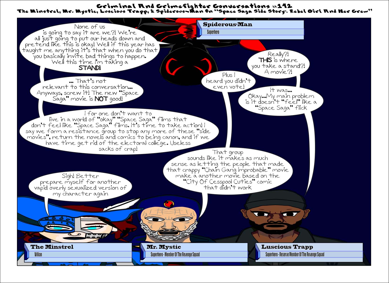 ccc-142-theminstrelmrmysticandluscioustrappandspiderousmantemplate-01 Published December 20, 2016 at 1650 × 1200 in Criminal And Crimefigher Conversations 142 – The Minstrel, Mr. Mystic, Luscious Trapp, & Spiderous-Man On “Space Saga Side Story: Rebel Girl And Her Crew” Share this:Tweet Click to print (Opens in new window) Print Click to share on Reddit (Opens in new window) Reddit Share on TumblrLike Loading...