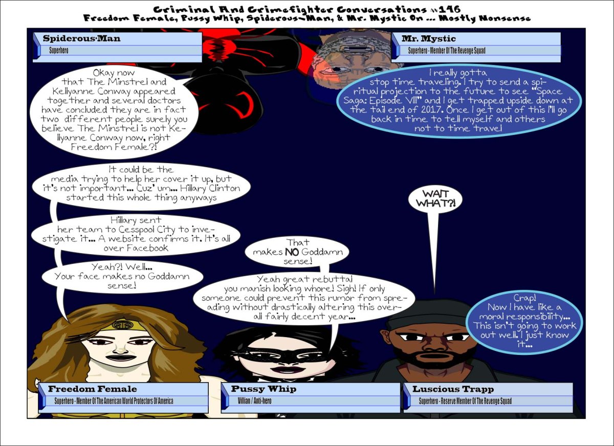 ccc-145-freedomfemalepussywhipluscioustrappspiderousmanandmrmyst Published December 28, 2016 at 1650 × 1200 in Criminal And Crimefighter Conversations #146 – Freedom Female, Pussy Whip, Luscious Trapp, Spiderous-Man, & Mr. Mystic On… Mostly Nonsense Share this:Tweet Click to print (Opens in new window) Print Click to share on Reddit (Opens in new window) Reddit Share on TumblrLike Loading...