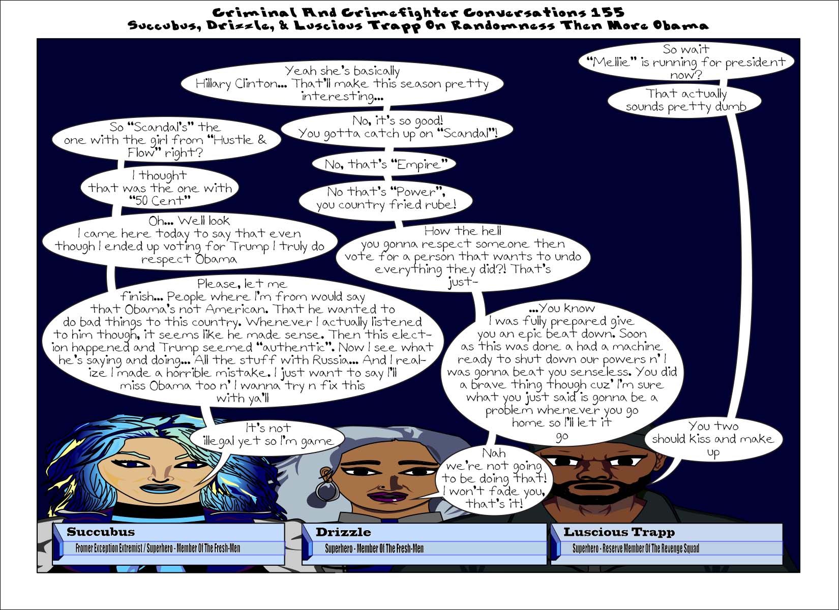 ccc-155-succubusdrizzleandluscioustrapp-01 Published January 18, 2017 at 1650 × 1200 in Criminal And Crimefighter Conversations #155 – Succubus, Drizzle, & Luscious Trapp On Randomness Then More Obama Share this:Tweet Click to print (Opens in new window) Print Click to share on Reddit (Opens in new window) Reddit Share on TumblrLike Loading...