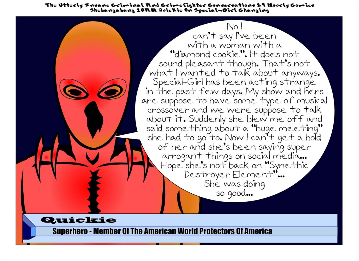 ccc-106.3-quickie Published January 31, 2017 at 1650 × 1200 in The Utterly Insane Criminal And Crimefighter Conversations 24 Hourly Comics Shebangabang 10AM Quickie On Special-Girl Changing Share this:Tweet Click to print (Opens in new window) Print Click to share on Reddit (Opens in new window) Reddit Share on TumblrLike Loading...
