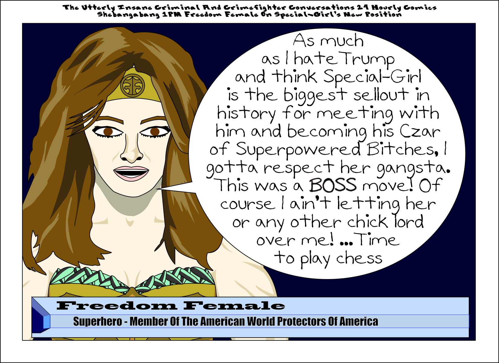 ccc-143.3-freedomfemale Published January 31, 2017 at 1652 × 1202 in The Utterly Insane Criminal And Crimefighter Conversations 24 Hourly Comics Shebangabang 1PM Freedom Female On Special-Girl’s New Position Share this:Tweet Print (Opens in new window) Print Share on Reddit (Opens in new window) Reddit Share on TumblrLike Loading...