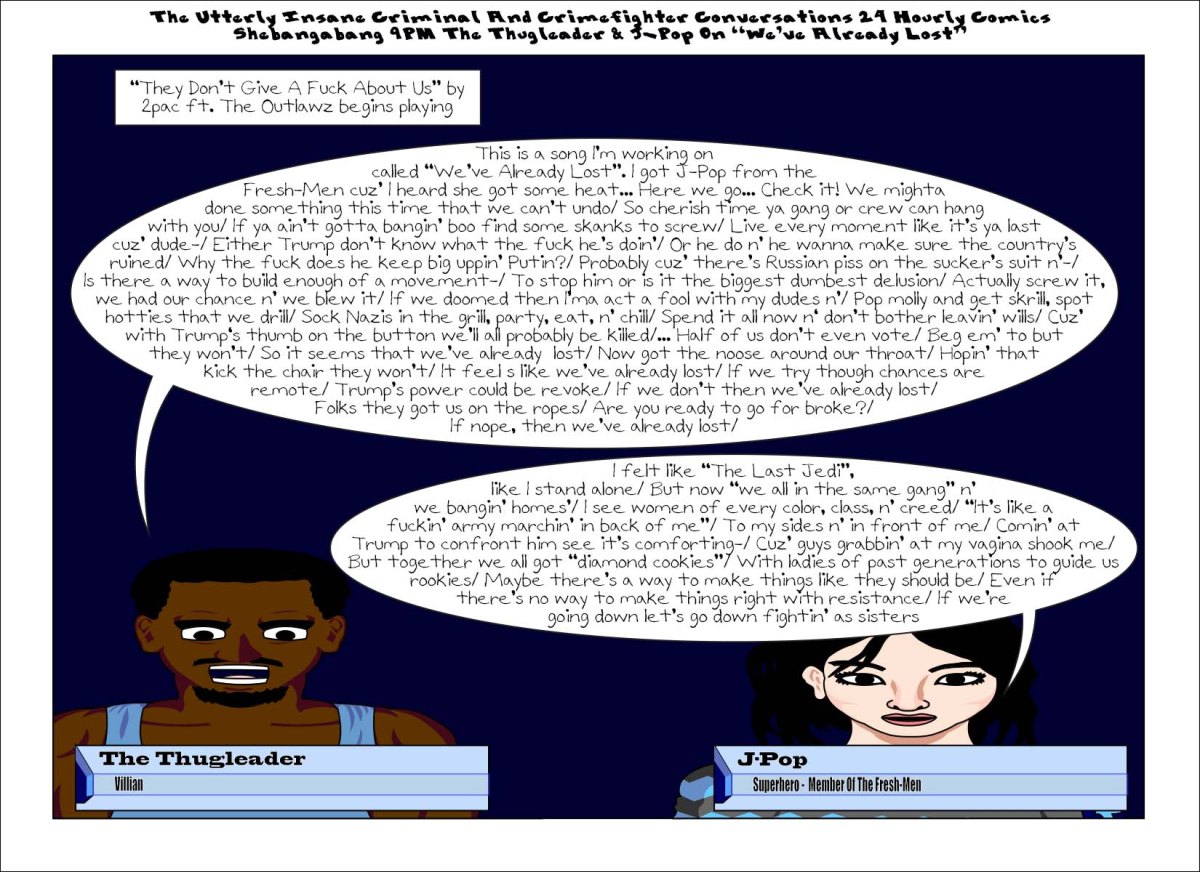 24hccc2017-9pmthugleaderandj-poptemplate-01 Published January 29, 2017 at 1650 × 1200 in The Utterly Insane Criminal And Crimefighter Conversations 24 Hourly Comics Shebangabang 9PM The Thugleader & J-Pop On “Mission Accomplished” « Previous Share this:Tweet Print (Opens in new window) Print Share on Reddit (Opens in new window) Reddit Share on TumblrLike Loading...