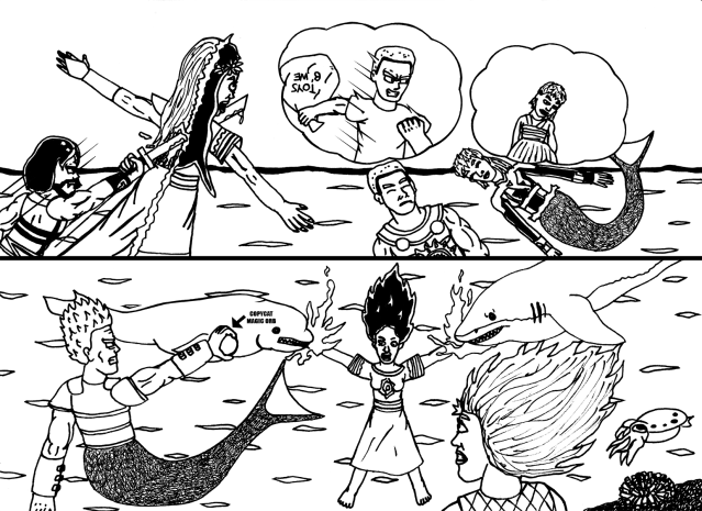 I’m taking the prompts from various May drawing challenges including “Mermay” and weaving them into a story. I’ve been doing this with monthly drawing challenges for a while. This one is a semi-sequel/ side story to one I did called “Mayday” from May of last year. Follow this using #cccmayhem