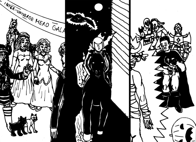 Since the Inktober from three years ago I’ve been taking prompts from these type of drawing challenges and weaving them into stories. For this one my “Sailor Moon” character (Admiral Star), and my “Buffy The Vampire Slayer” character (Muffina The (Former) Murderess Of Monsters), and they are joined by my newly introduced “Sabrina The Teenage Witch” character, Briana The Adolescent Sorceress/ Bruja. Here I’m taking the official Inktober prompts from Jake Parker along with numerous other prompts and weaving them into a story. There’s 33 prompts in total… Because 33 is a significant number…