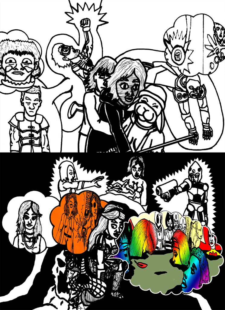 After the events of the last few of these ( A 3rd October Surprise: The Trinity Of Terror, Pause: A Halt To The Onward March Of Automation, and Maybe: A Problem Of Possibility) it seems the universe has been altered so that my “S͓̽a͓̽i͓̽l͓̽o͓̽r͓̽ ͓̽M͓̽o͓̽o͓̽n͓̽” character (Admiral Star), my “𝕭𝖚𝖋𝖋𝖞 𝕿𝖍𝖊 𝖁𝖆𝖒𝖕𝖎𝖗𝖊 𝕾𝖑𝖆𝖞𝖊𝖗” character (Muffina The (Former) Murderess Of Monsters), my “𝓢𝓪𝓫𝓻𝓲𝓷𝓪 𝓣𝓱𝓮 𝓣𝓮𝓮𝓷𝓪𝓰𝓮 𝓦𝓲𝓽𝓬𝓱” character, Briana The Adolescent Sorceress/ Bruja, and my ℂ𝕦𝕥𝕚𝕖 ℍ𝕠𝕟𝕖𝕪 character (Sweetie Hottie) have now known each other much earlier than originally. My ᴍᴇɢᴀ ᴍᴀɴ character (Adapter Droid), though he has a corrupted memory, knows this universe is wrong and must journey to return it to normal.