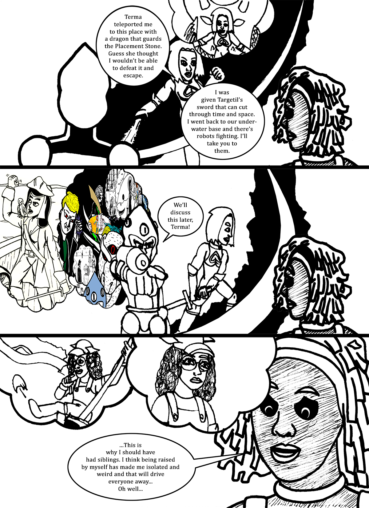 In this altered timeline (in another story A 4th October Surprise: The Four Horsemen Of Horror) the living embodiment of Horror and his 4 horsemen rule. Eventually, Adapter Droid along with a group of heroes defeats them and returns things to normal. One of those heroes, Muffina Winters (Buffy The Vampire Slayer) decides to use another of the Multiversal Stones to resurrect her dead sister Autumn. In her search for it, she and a group of other heroes discover a shadowy group known as Fox, Goat, & Soul (Wolfram & Heart from Angel) want to use it to replace the Multiverse with one shaped in their vision. Among this group is a robot called Terma (Arale from Dr. Slump) who was created based on Adapter Droids design. Terma is convinced to protect the Multiverse rather than replace it and helps the heroes stop Fox, Goat, & Soul from achieving their goals.