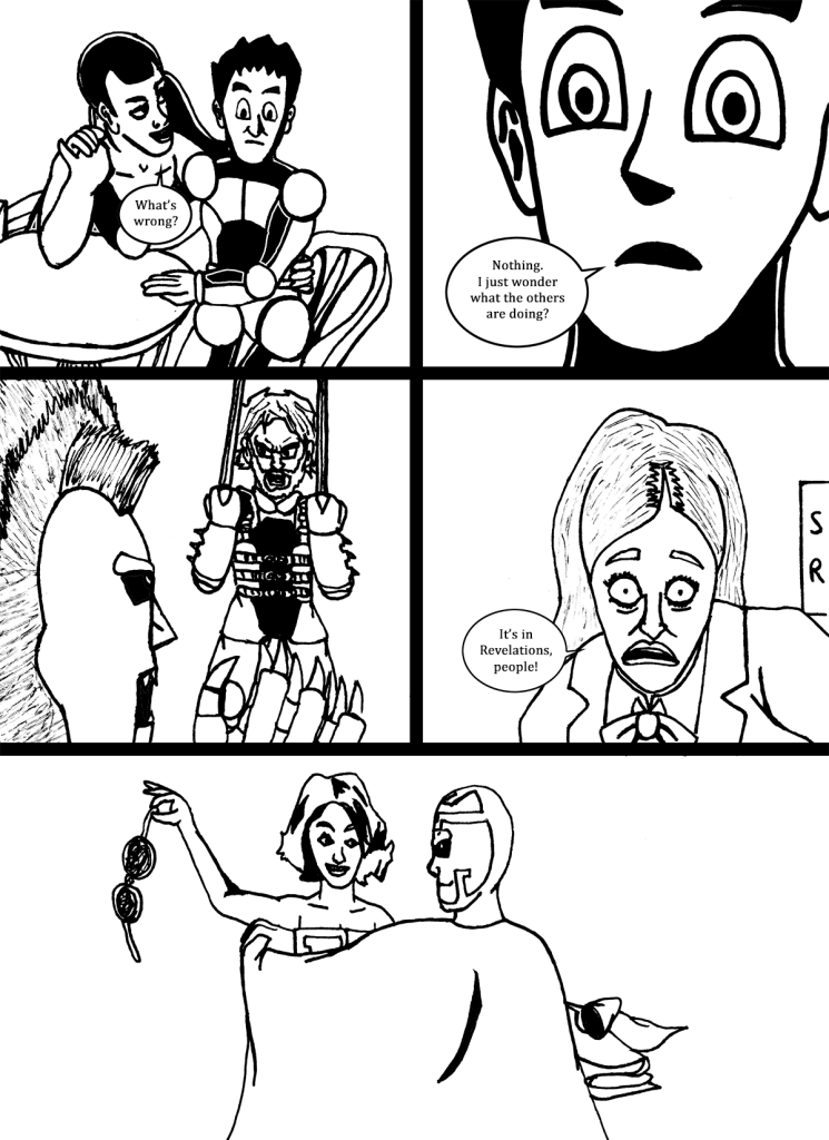 In this altered timeline (in another story A 4th October Surprise: The Four Horsemen Of Horror) the living embodiment of Horror and his 4 horsemen rule. Eventually, Adapter Droid along with a group of heroes defeats them and returns things to normal. One of those heroes, Muffina Winters (Buffy The Vampire Slayer) decides to use another of the Multiversal Stones to resurrect her dead sister Autumn. In her search for it, she and a group of other heroes discover a shadowy group known as Fox, Goat, & Soul (Wolfram & Heart from Angel) want to use it to replace the Multiverse with one shaped in their vision. Among this group is a robot called Terma (Arale from Dr. Slump) who was created based on Adapter Droids design. Terma is convinced to protect the Multiverse rather than replace it and helps the heroes stop Fox, Goat, & Soul from achieving their goals.