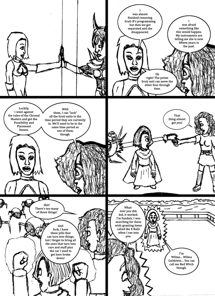 Terma, then in another story, collects all the multiversal stones and freezes all life in crystal in a misguided attempt to “protect the multiverse”. A group of robots, including a robot version of Muffina and Sweetie Hottie (ℂ𝕦𝕥𝕚𝕖 ℍ𝕠𝕟𝕖𝕪) eventually undo what Terma did. In the process, they find the Key To All Realms and create a being called Scuti to help them fight Terma. Scuti and Sweetie are sent back in time and The Key To All Realms is transformed into Muffina’s sister Autumn. In the present, Autumn is now pregnant.