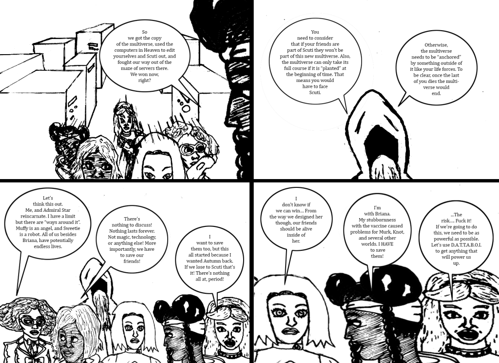 Terma, then in another story, collects all the multiversal stones and freezes all life in crystal in a misguided attempt to โprotect the multiverseโ. A group of robots, including a robot version of Muffina and Sweetie Hottie (โ๐ฆ๐ฅ๐๐ โ๐ ๐๐๐ช) eventually undo what Terma did. In the process, they find the Key To All Realms and create a being called Scuti to help them fight Terma. Scuti and Sweetie are sent back in time and The Key To All Realms is transformed into Muffinaโs sister Autumn. In the present, Autumn is now pregnant.