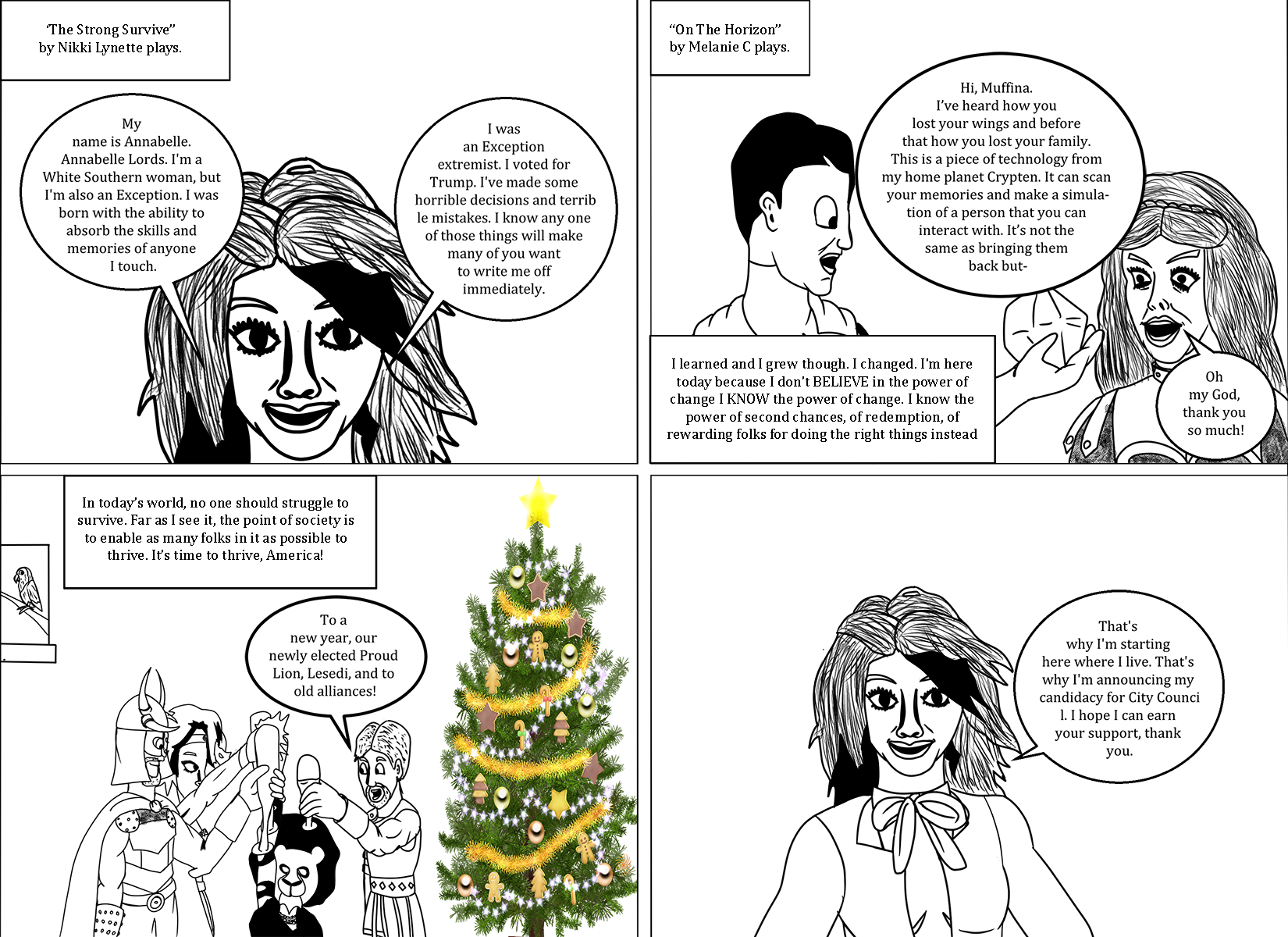 Since the Inktober of 2017, I’ve been taking prompts from these types of drawing challenges and weaving them into stories featuring my versions of many pop culture characters. This one is a story about allies. It’s also a story where I look at some controversial decisions made by characters and give an emphatic “no” to them. I might be biting off more than I can chew as I’m also trying out a lot of new stuff artwise. Anyway, let’s see where this takes us…