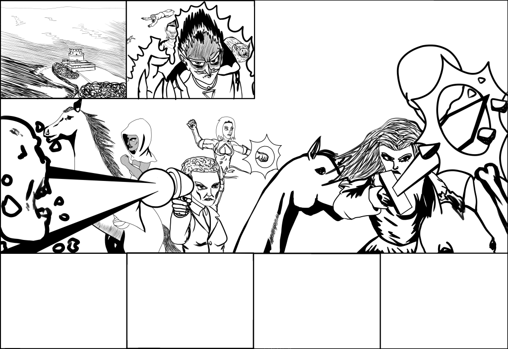 After her refusal to take a vaccine that protects people from being erased from time inadvertently led to the shattering of the powerful Possibility stone which in turn led to fellow heroes Murk (Cloud from Final Fantasy 7) and Knot (a female version of Link from The Legend of Zelda) switching places with their counterparts in other universes, Admiral Star (Sฬฝอaฬฝอiฬฝอlฬฝอoฬฝอrฬฝอ ฬฝอMฬฝอoฬฝอoฬฝอnฬฝอ) decided to help these worlds as atonement. The nemesis of the first of these stories, Red Witch (Scarlet Witch) due to her guilt from a rampage she went on after a mental breakdown decided to come along with Admiral Star to aid her.