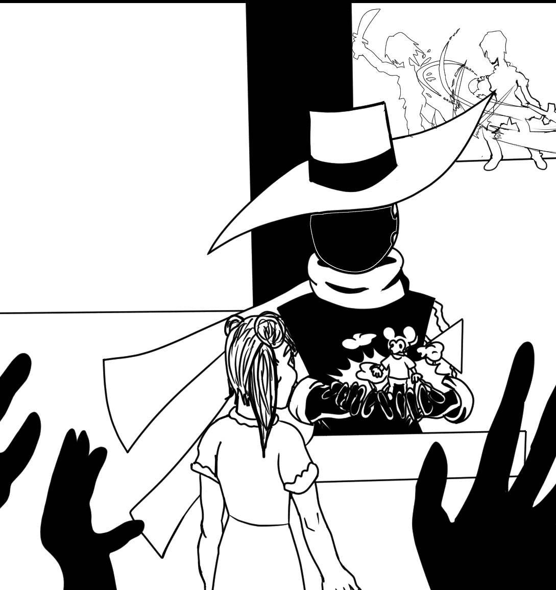 After her refusal to take a vaccine that protects people from being erased from time inadvertently led to the shattering of the powerful Possibility stone which in turn led to fellow heroes Murk (Cloud from Final Fantasy 7) and Knot (a female version of Link from The Legend of Zelda) switching places with their counterparts in other universes, Admiral Star (Sฬฝอaฬฝอiฬฝอlฬฝอoฬฝอrฬฝอ ฬฝอMฬฝอoฬฝอoฬฝอnฬฝอ) decided to help these worlds as atonement. The nemesis of the first of these stories, Red Witch (Scarlet Witch) due to her guilt from a rampage she went on after a mental breakdown decided to come along with Admiral Star to aid her.