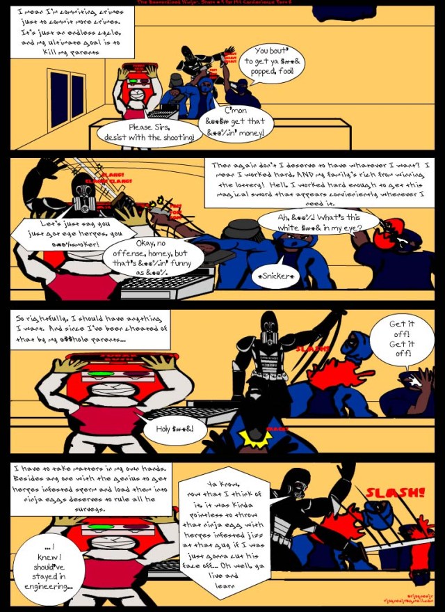 6Jun2012 The Bastardized Ninja Short # 9 “For MY Convenience Part 2″ Censored Posted in censoredshort, tbnshort by Ricky Joynes Jr. The Bastardized Ninja Short # 9 “For MY Convenience Part 2″ Censored Share this:Tweet Click to print (Opens in new window) Print Click to share on Reddit (Opens in new window) Reddit Share on TumblrLike Loading...